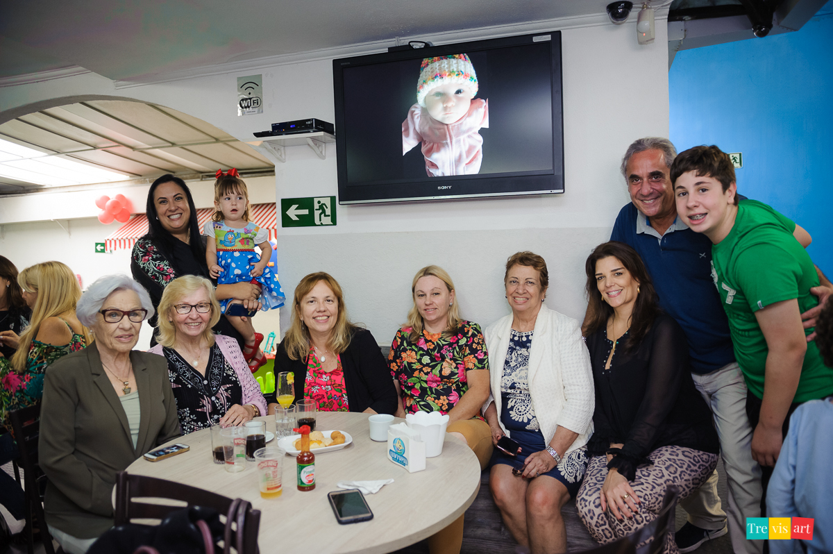 foto de familia em festa de aniversario infantil de menina em buffet infantil centopeia em curitiba tema de festa galinha pintadinha